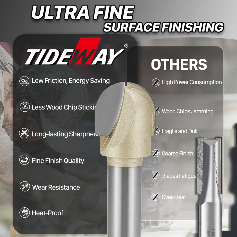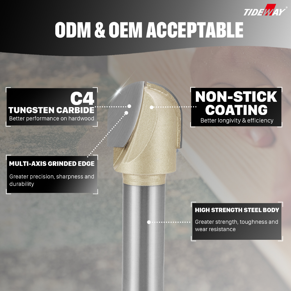 IDEWAY mèches de routeur à nez rond profond de qualité professionnelle à pointe en carbure pour le travail du bois revêtu d’étain