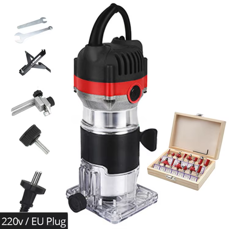Tondeuse électrique à 2 temps 1000W filaire pour le travail du bois Sculpture sur bois à la main Routeur de paume Laminateur Fraiseuse de bord